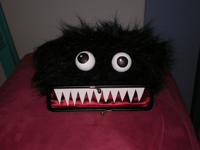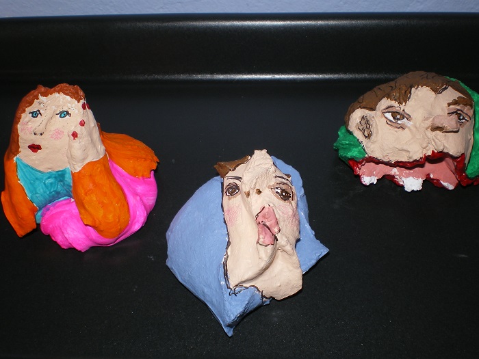 "Fiffi, das fiese Filzmonster" = Eierkarton, Wackelaugen, verfilzte Wollfäden, Draht