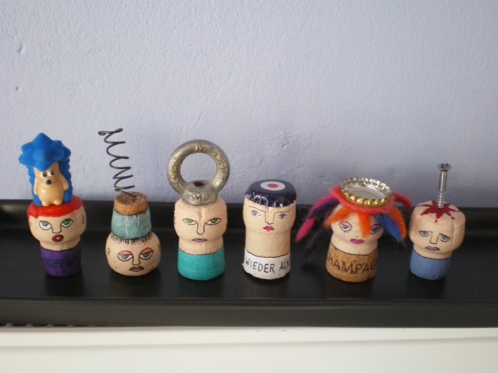 von diesen sind fast alle schon verkauft - aber die dinger wachsen nach...alte sektkorken die die reihe "nie wieder alkohol!" vertreten: