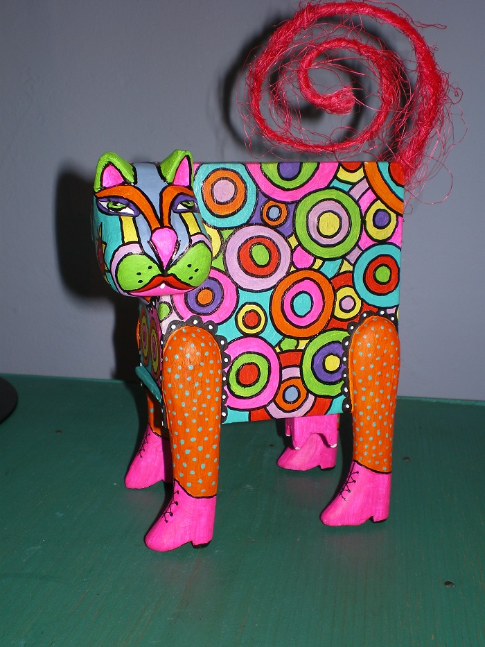 "Klaviertier" = Teilchen aus altem Klavier, Acrylfarbe, Draht