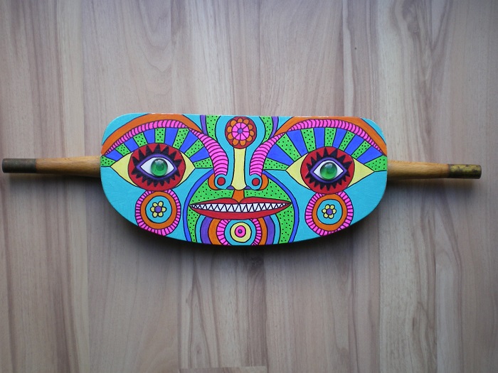 "Disco-Alien" = Holzkeil, Kronkorken, Glasnuggets, Kissentroddel